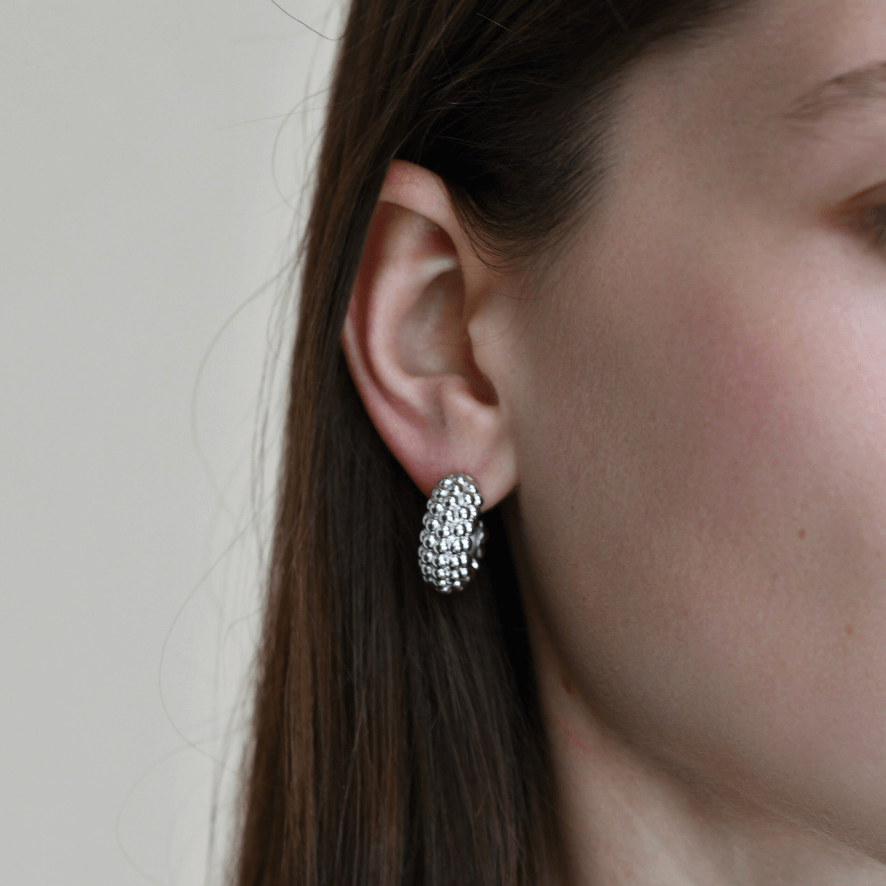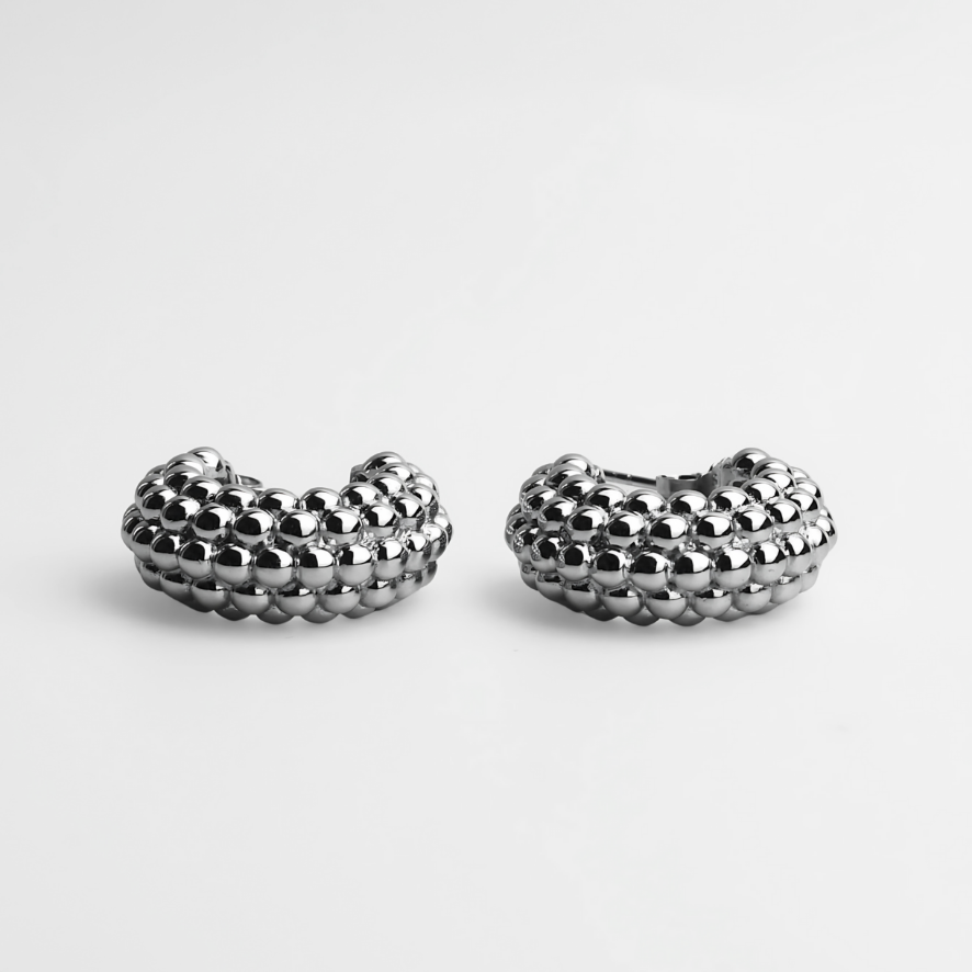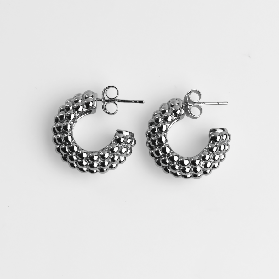 Chunky, bubbly, round earrings made of rhodium coated 925 sterling silver. Diameter of each earring is 20mm.