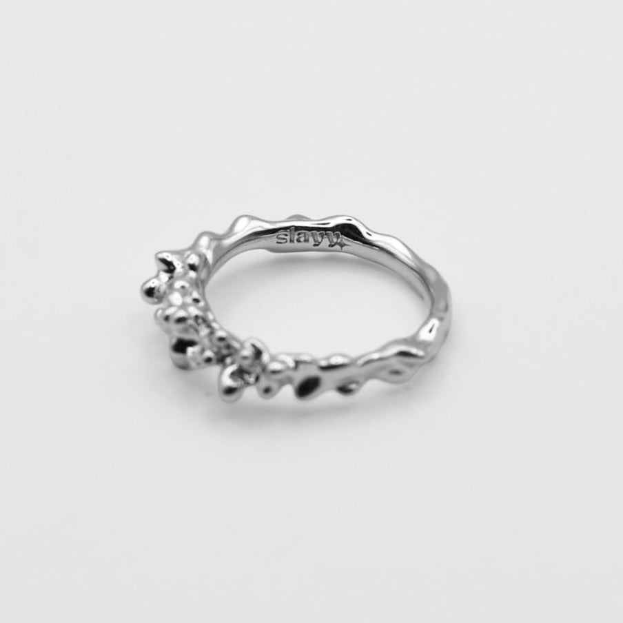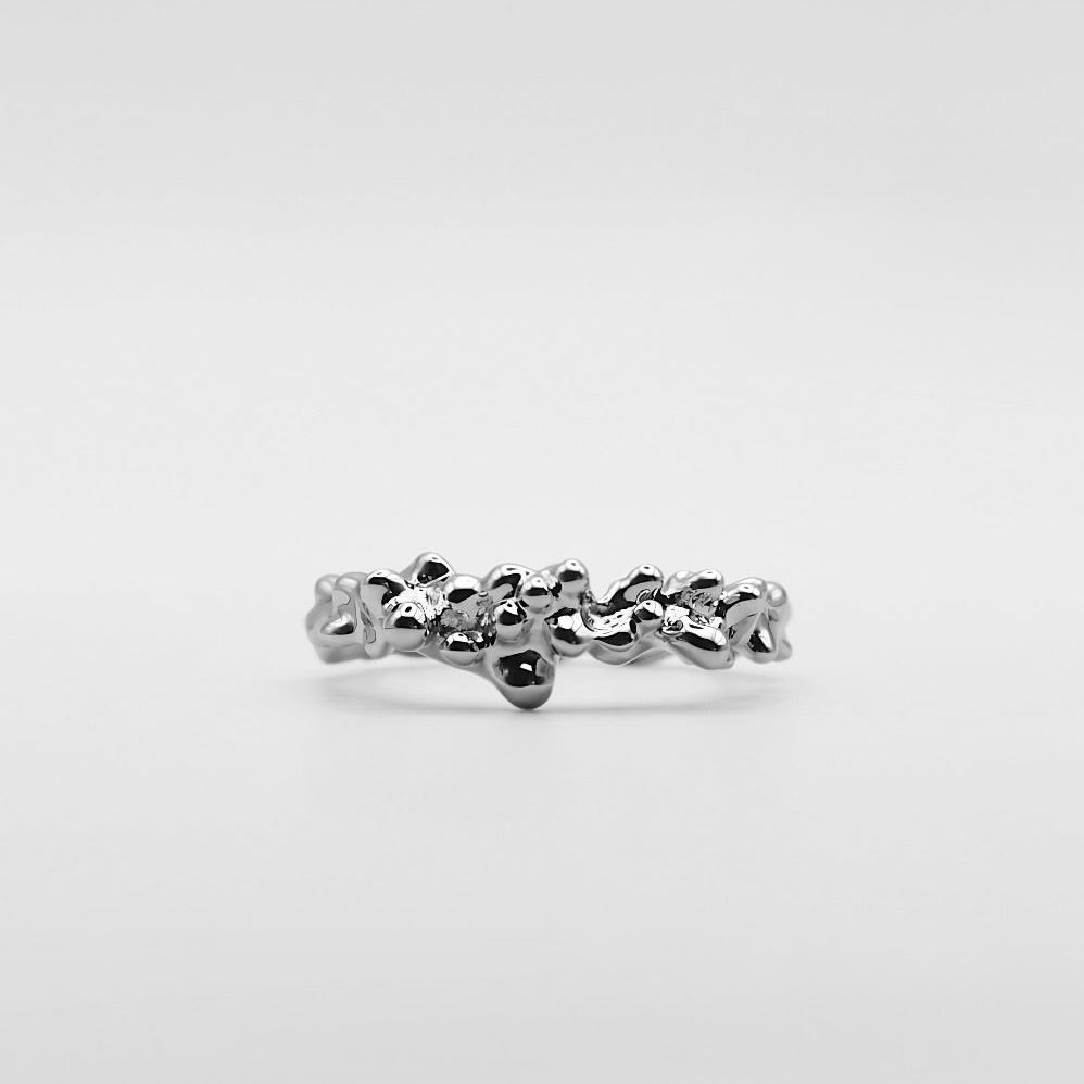 Made of 925 Silver with high-polish rhodium coating. Inspired by nature's irregular forms and it's raw beauty.
