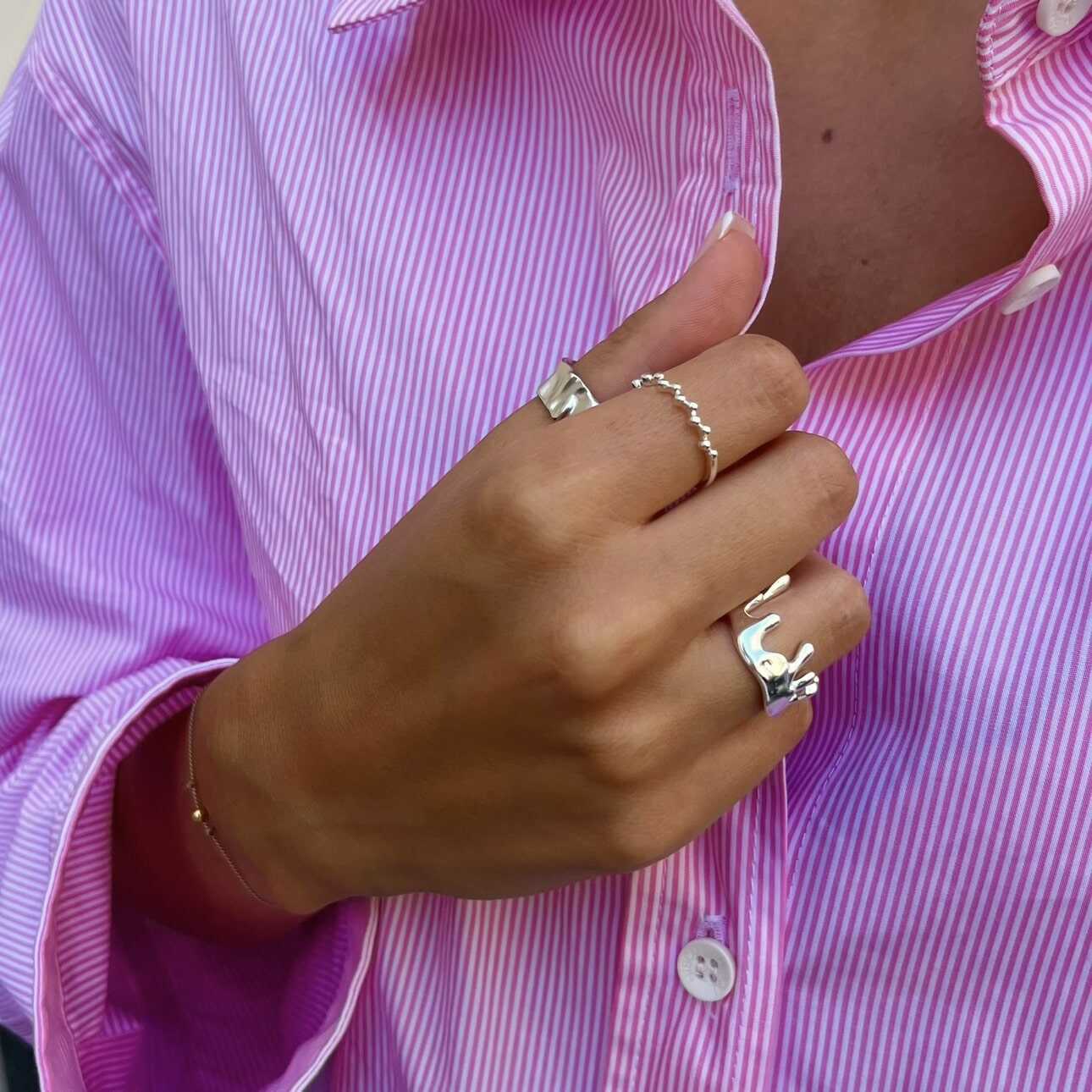 At Slayy, we use 925 silver for our jewelry, ensuring high quality and durability. Each piece is coated with rhodium, which enhances shine and protects against tarnishing.