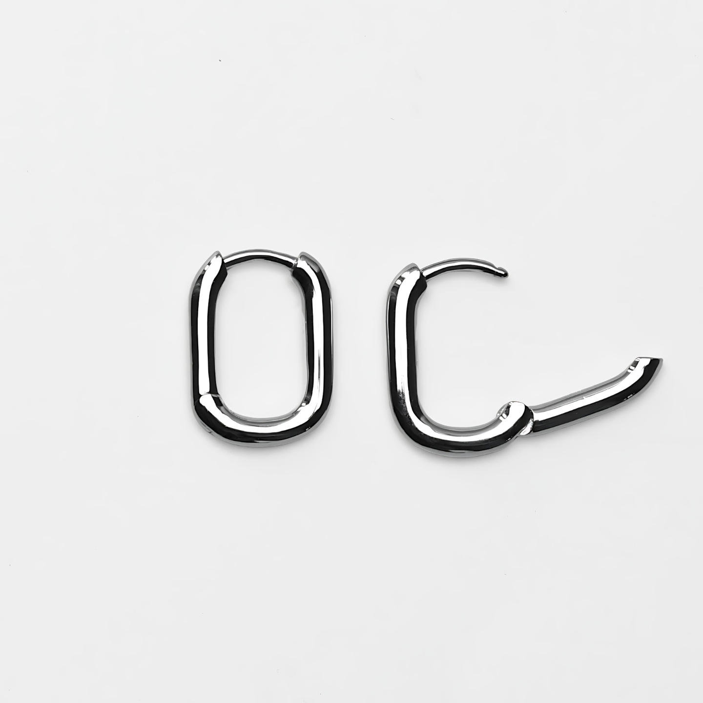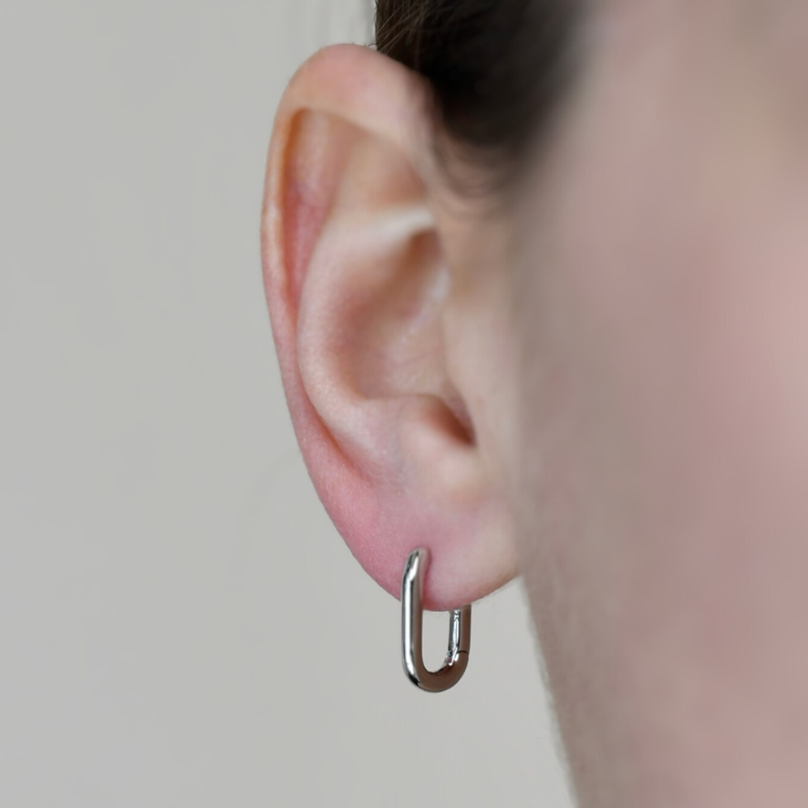 Small, essential hoops earrings, 10mm x 13mm. Made of rhodium coated 925 sterling silver.