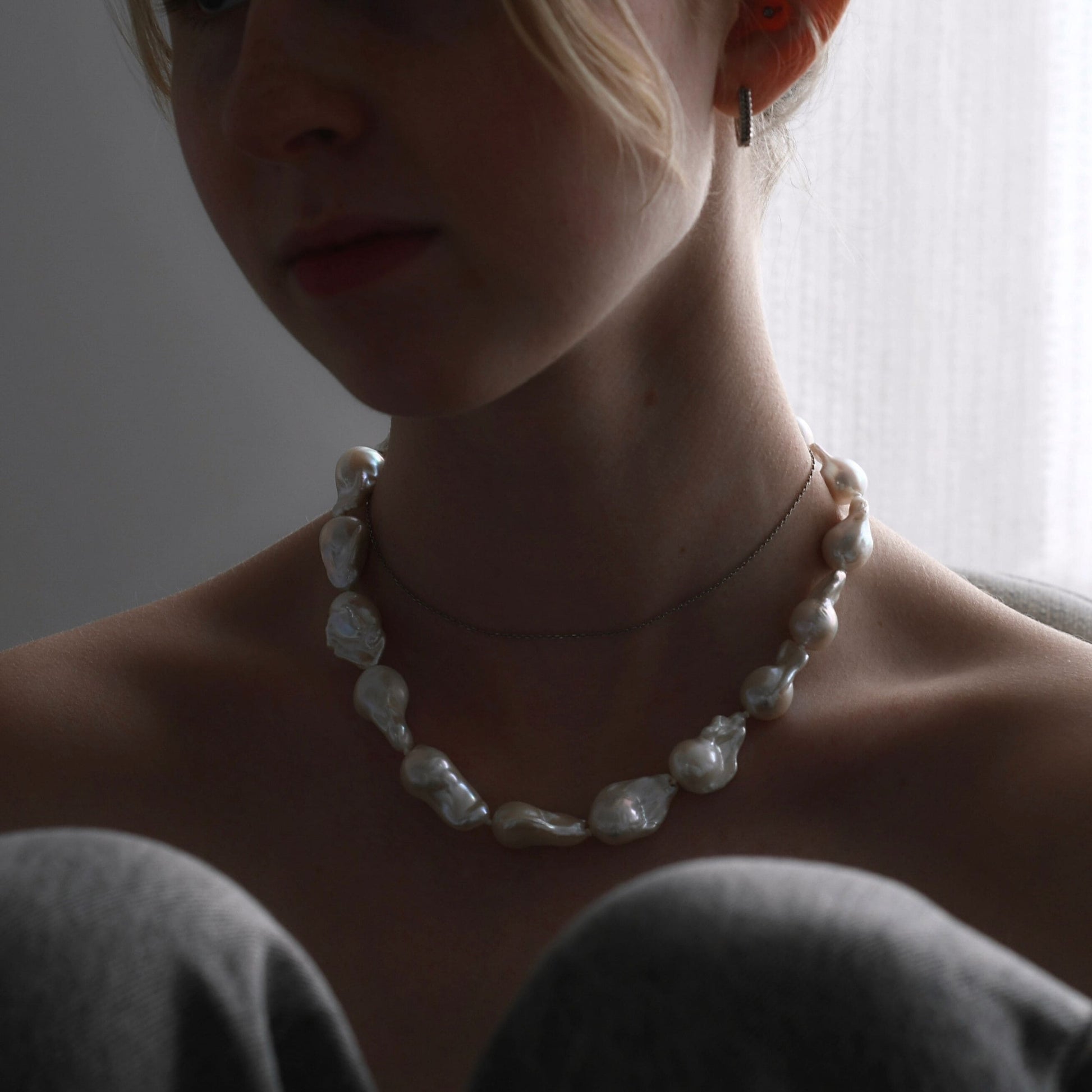 Made with natural, freshwater 16-18mm baroque AA grade pearls. Necklace is 45cm long, 925 sterling silver clasp.