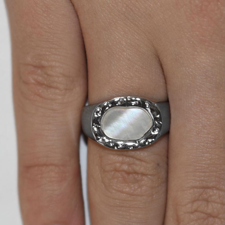Every piece of white pearl shell is unique - your ring will be as similar as possible to the one on the picture but no two rings are the same.