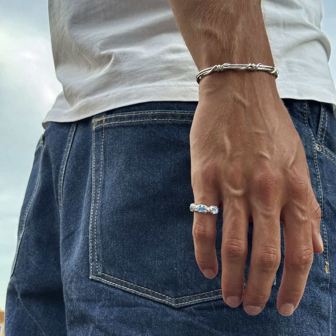 At Slayy, we use 925 silver for our jewelry, ensuring high quality and durability. Each piece is coated with rhodium, which enhances shine and protects against tarnishing.