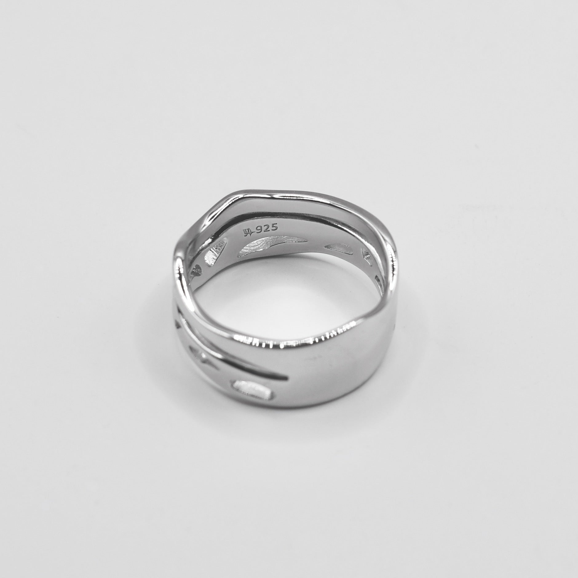 Made of 925 Sterling Silver, rhodium coated. Weight of the ring is around 4g.